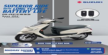 Established in 2018, MADHAV SUZUKI, Kuvadva Road is one of the most well-known and trusted Suzuki Bike Showroom in Rajkot- Kuvadwa Road. MADHAV SUZUKI is an authorised Suzuki Motorcycle Dealer with a state-of-the-art showroom where you can check out the new Avenis,take it out for a test ride, and book your dream ride. On our website, you can explore the entire range of two-wheelers by Suzuki Motorcycles. You can also find out the ex-showroom price of different variants, calculate EMI, get a callback, and even book a suitable time slot for a test ride. Check out your favourite Suzuki motorcycles and scooters conveniently, with the easy-to-use filters to simplify your search. MADHAV SUZUKI offers the entire range of Suzuki Motorcycles, Big Bikes, and Scooters in the Avenis from MADHAV SUZUKI,check out its features, take it for a ride, get a quote, and book your favourite bike from the entire range of Suzuki motorcycles and scooters in. At MADHAV SUZUKI, you can also avail two-wheeler finance to buy your favourite ride.